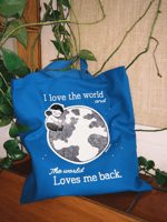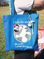 • Black and white plastisol ink on a royal blue color heavy duty canvas tote